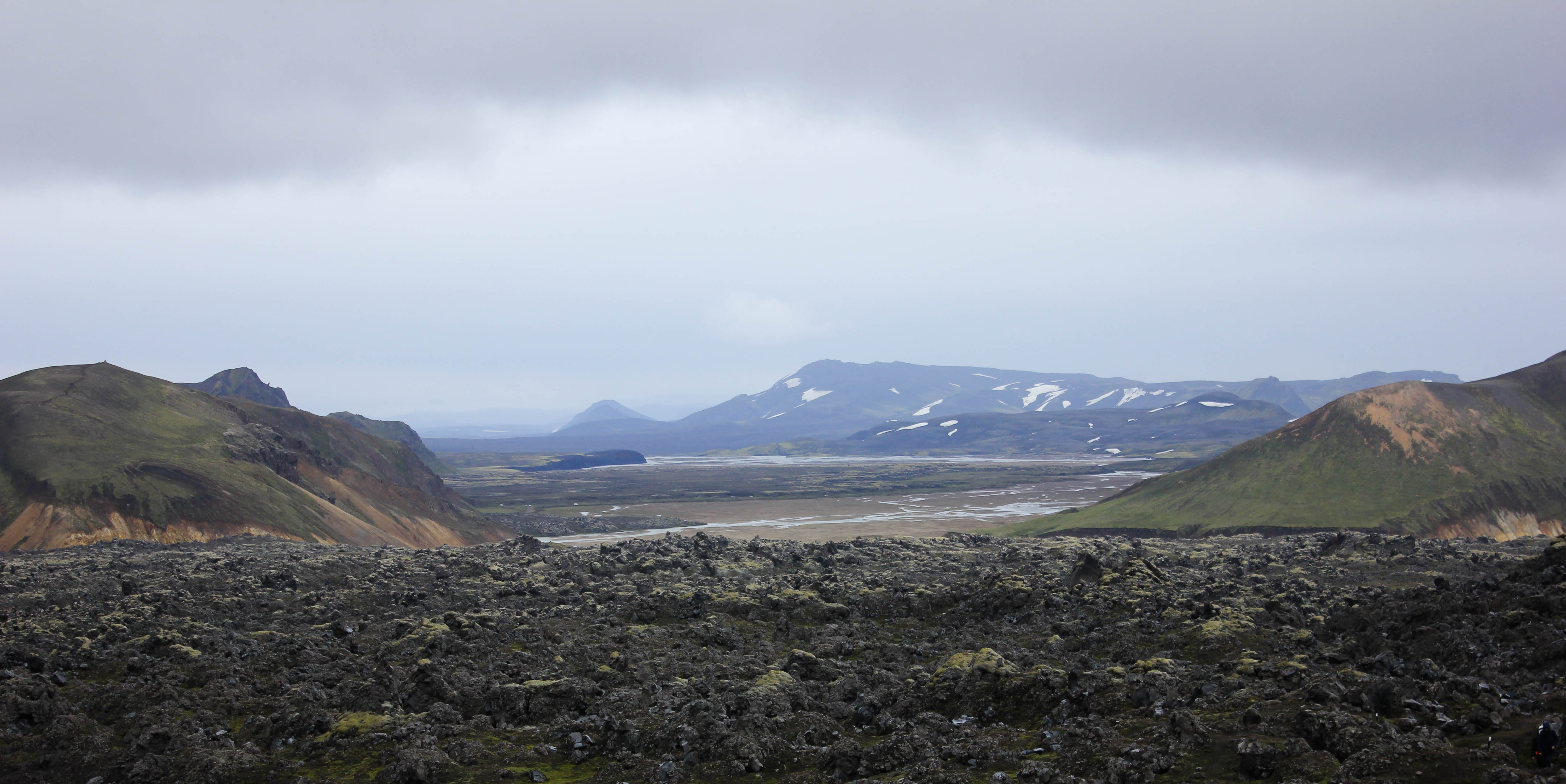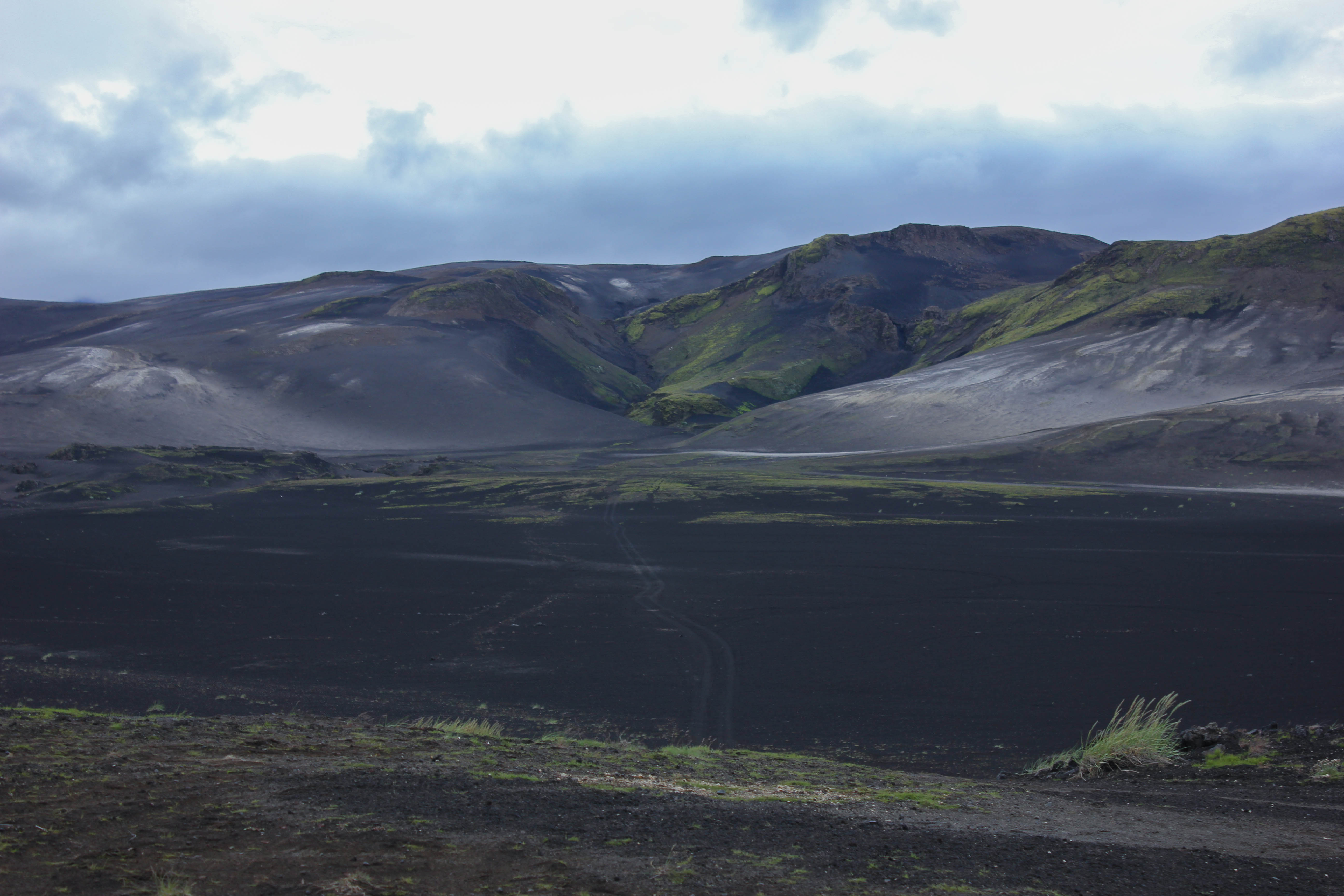 Il est environ 8H30 lorsque nous prenons la route, pour un trajet qui va nous prendre pas mal de temps, mais qui devrait nous offrir de très beaux paysages. Nous partons par la route n°32, sans aucune difficulté, que nous empruntons jusqu’à sa fin, pour ensuite bifurquer vers le Sud, par la F26, afin de pouvoir rejoindre notre terre promise. Si la n°32 se révèle effectivement très jolie et offrant de magnifiques panoramas, on notera surtout que nous effectuons nos premiers tours de roue sur piste sur la F26. Et quelle piste! Très caillouteuse, nous sommes bien heureux d’avoir un 4×4 sur cette route, les pièges sont nombreux, et nous sommes parfois pas mal secoués. Enfin, cela ne dérange pas forcément Léon, qui s’endort comme un chef au bout d’un moment, pour ne refaire surface qu’en dernière partie du trajet. Une fois le trajet sur la F26 terminé, nous passons donc sur le dernier tronçon, qui là pour le coup devient carrément génial. Champ de lave, ambiance sombre et contrastée, on en prend plein les yeux! Mais la petite cerise sur le gâteau, et que je n’avais pas forcément prévue au départ, ce sont les franchissements de gués! J’avais pourtant lu pas mal de textes et vu pas mal de vidéos sur internet afin de pouvoir éviter les pièges, se retrouver face à son premier gué, c’est quand même une sensation bizarre.