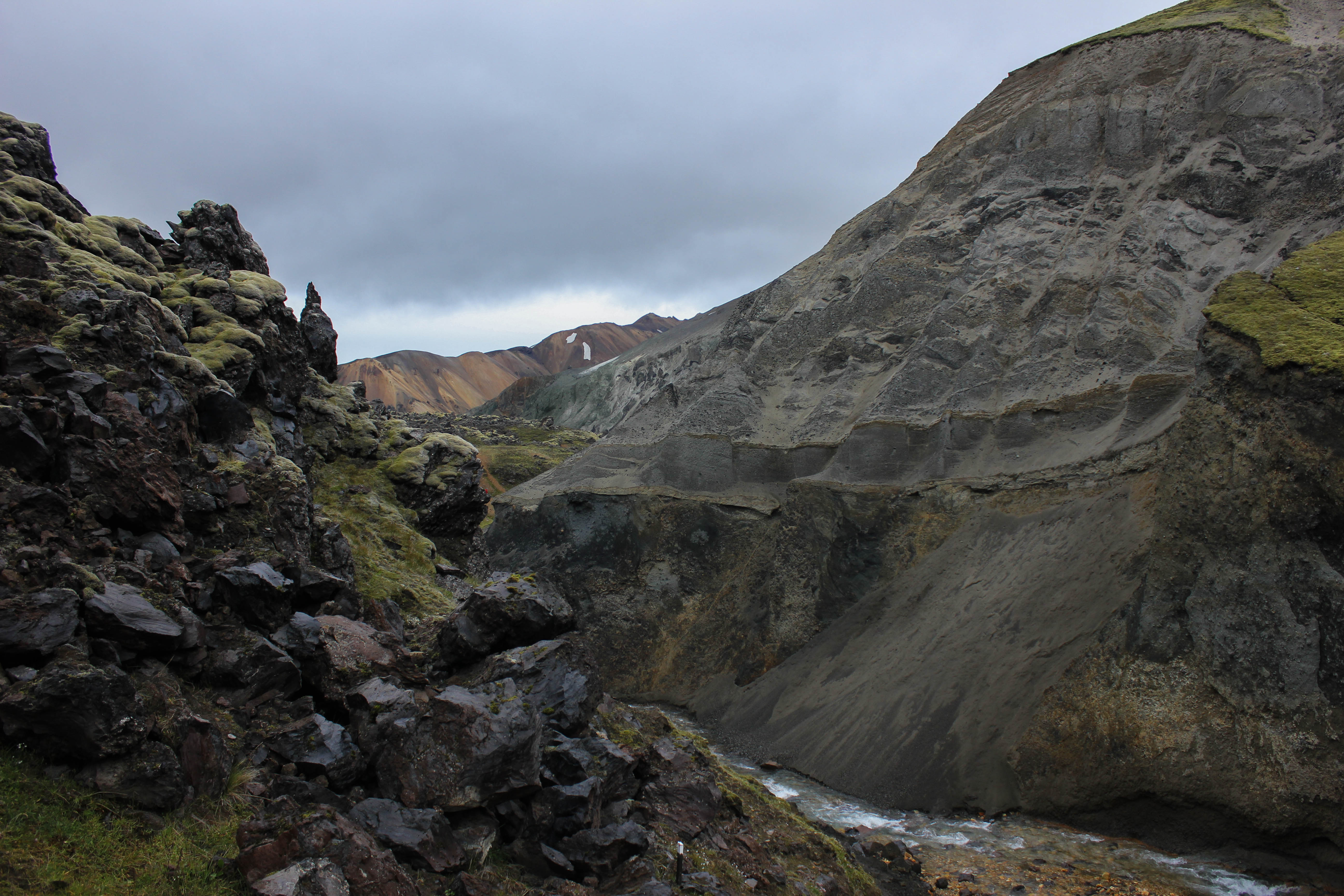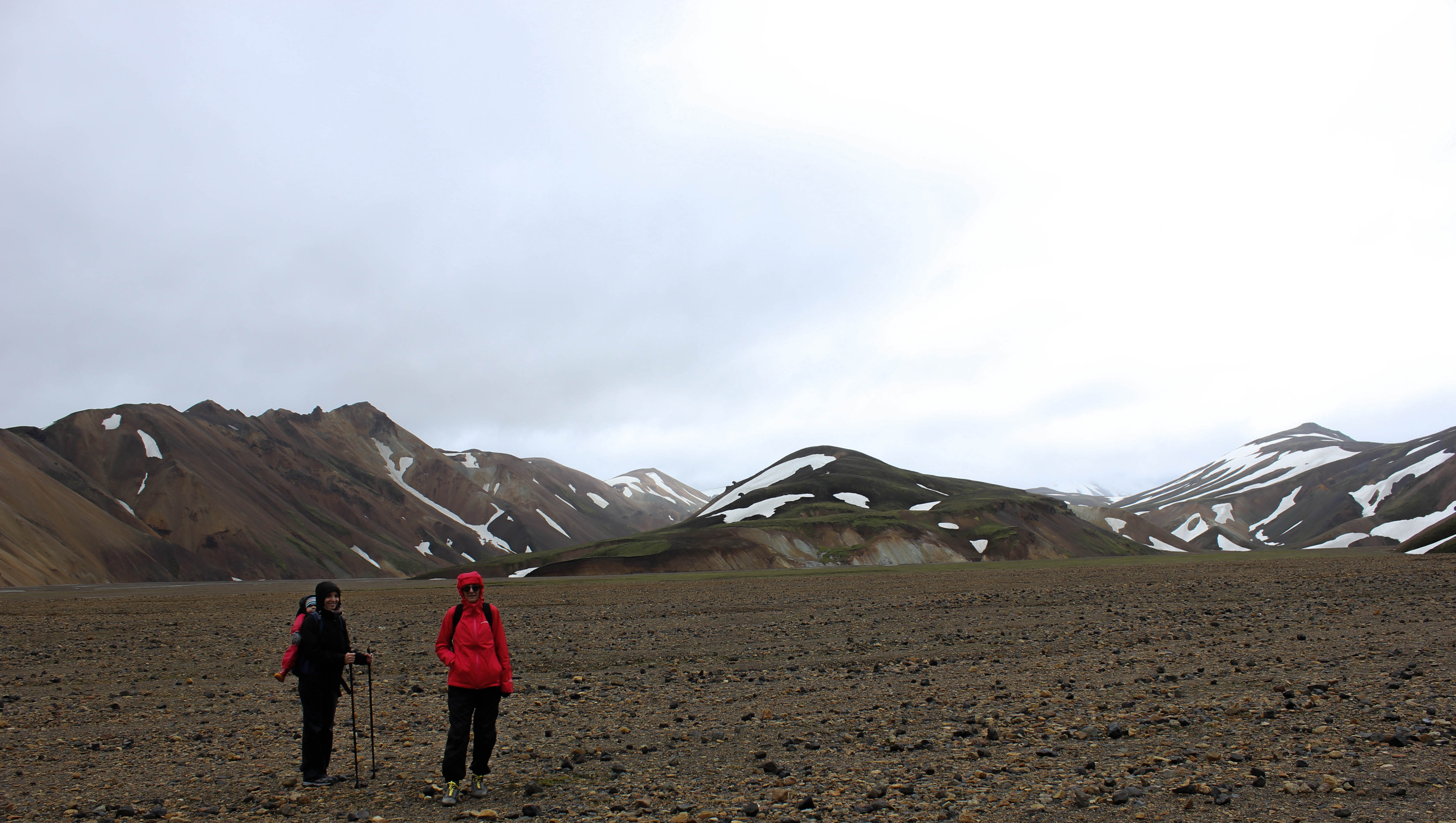 C’est sur les coups de 11H-11H30 que nous arrivons sur le site du Landmannalaugar, accueillis par une belle averse, et la levée du vent. La question se pose de savoir si l’on part de suite pour une randonnée ou bien si l’on attend encore un peu, après tout, pour l’avoir lu à maintes reprises, « Si le temps en Islande ne te convient pas, attends 5min ». Nous décidons sagement de rester dans la voiture, et de nous restaurer. Au menu, sandwichs, mais surtout une spécialité délicieuse de l’Islande, qui va nous donner toute l’énergie nécessaire pour la suite de la journée: du Skyr! Vraiment, si vous n’avez rien contre les produits laitiers, il faut que vous goûtiez au Skyr, c’est absolument merveilleux (parenthèse « Les produits laitiers, des sensations pures » terminée). Après nous être délectés donc de nos skyrs respectifs, nous nous préparons à partir. Si vous vous souvenez bien, on souhaite passer incognito… Et bien c’est manqué: j’ai oublié mon bonnet (la honte), et nous avons omis également les gants de Léon (la honte internationale). Et il ne fait vraiment pas très chaud, ce qui a le don de m’énerver contre moi même!