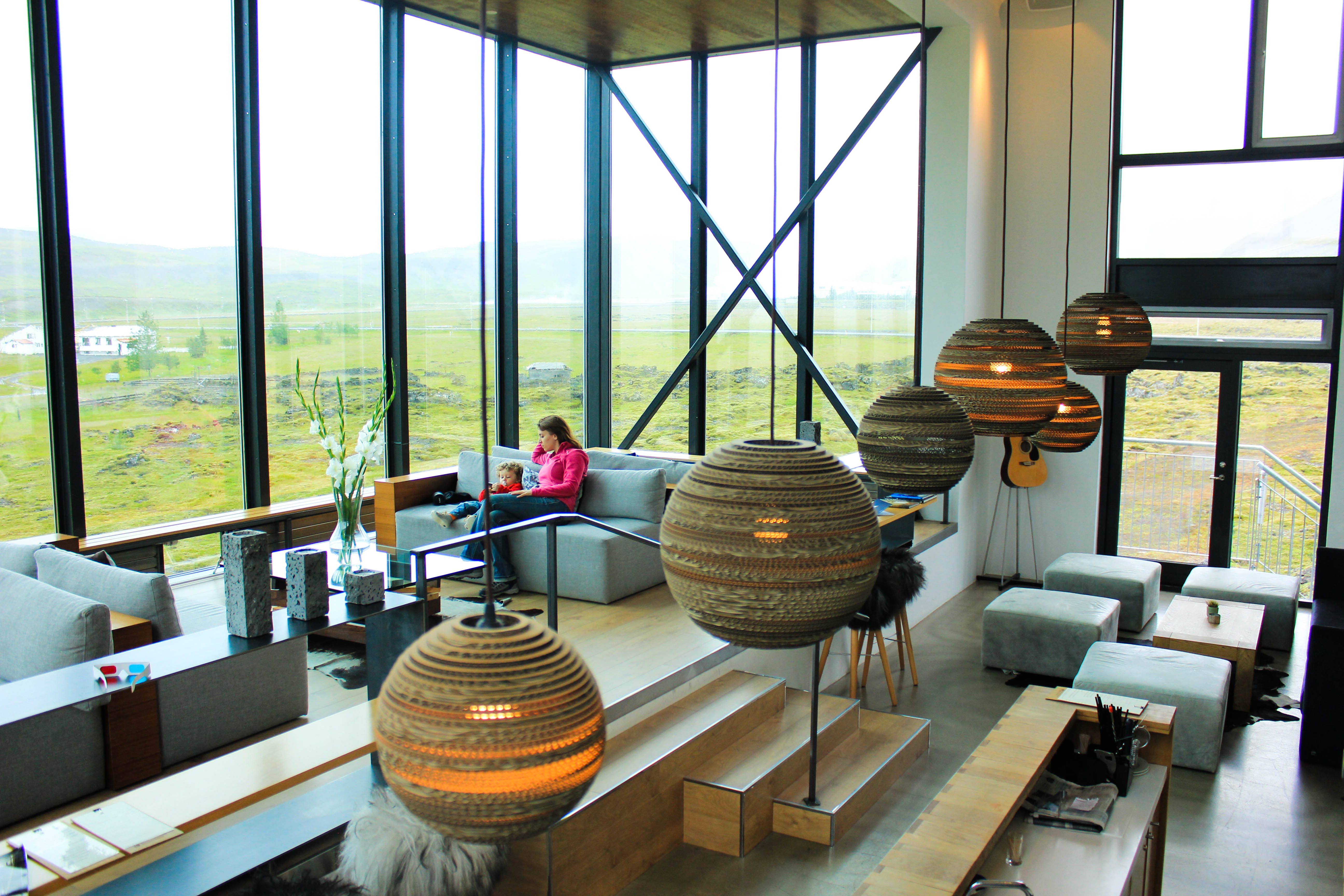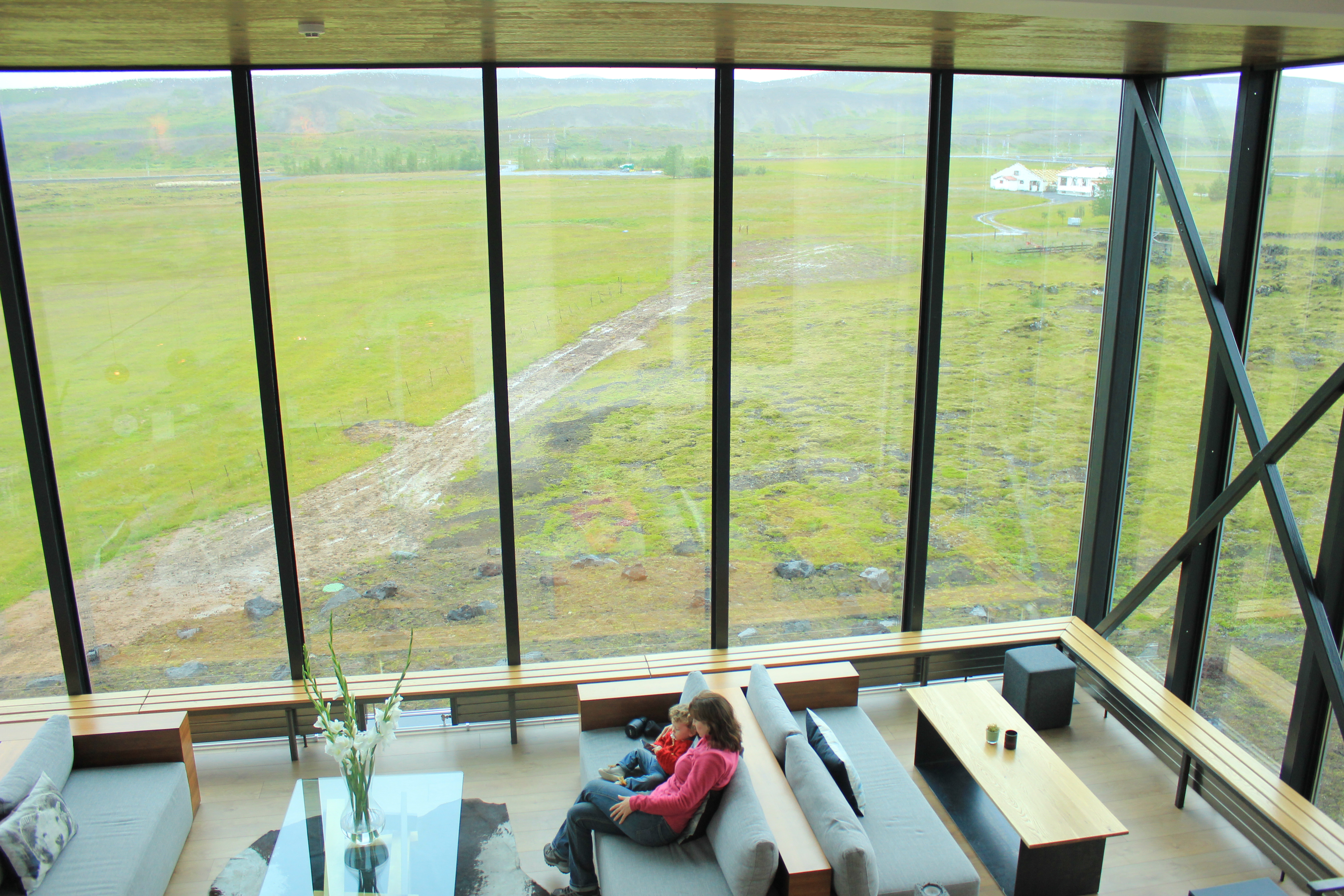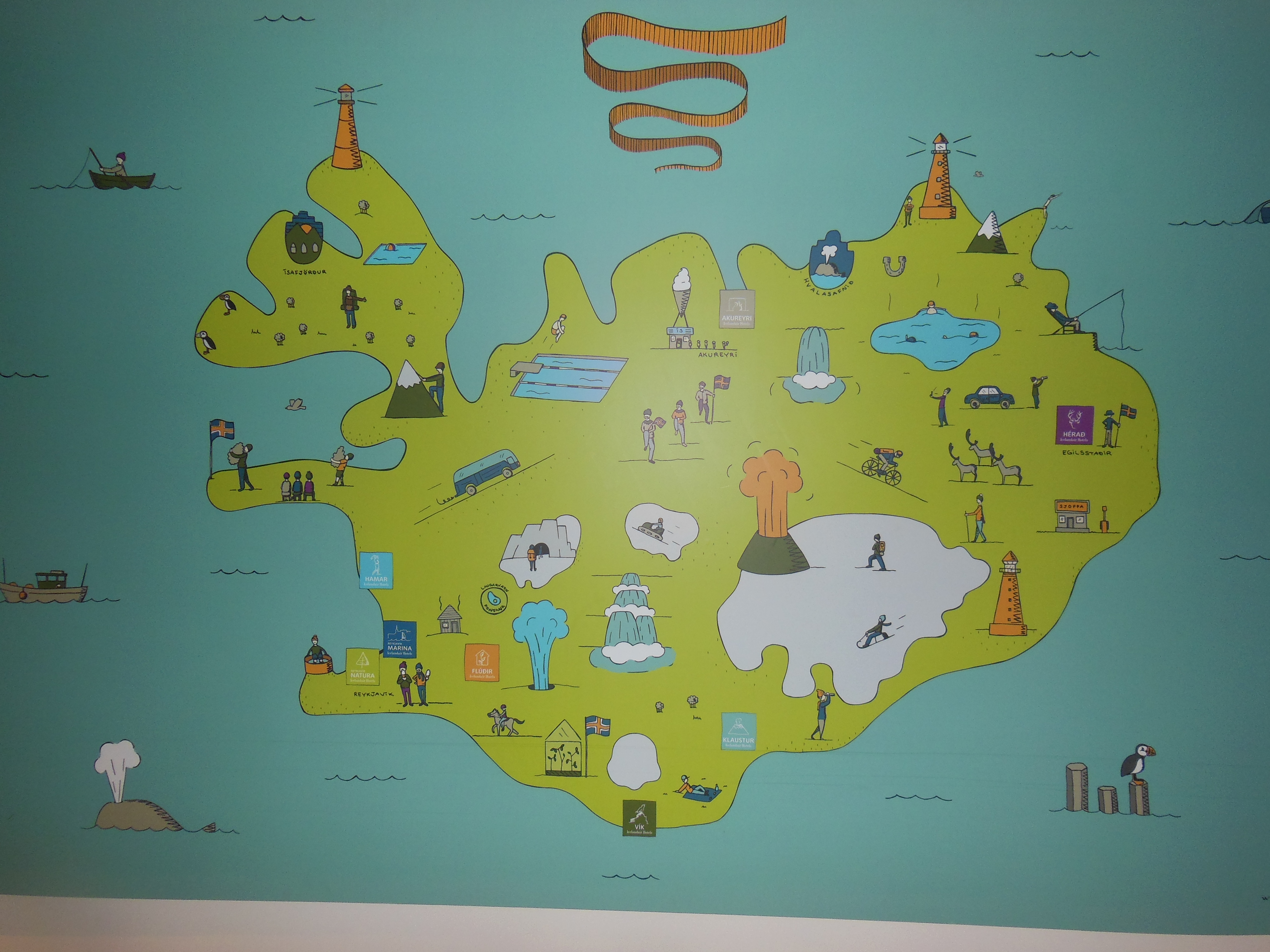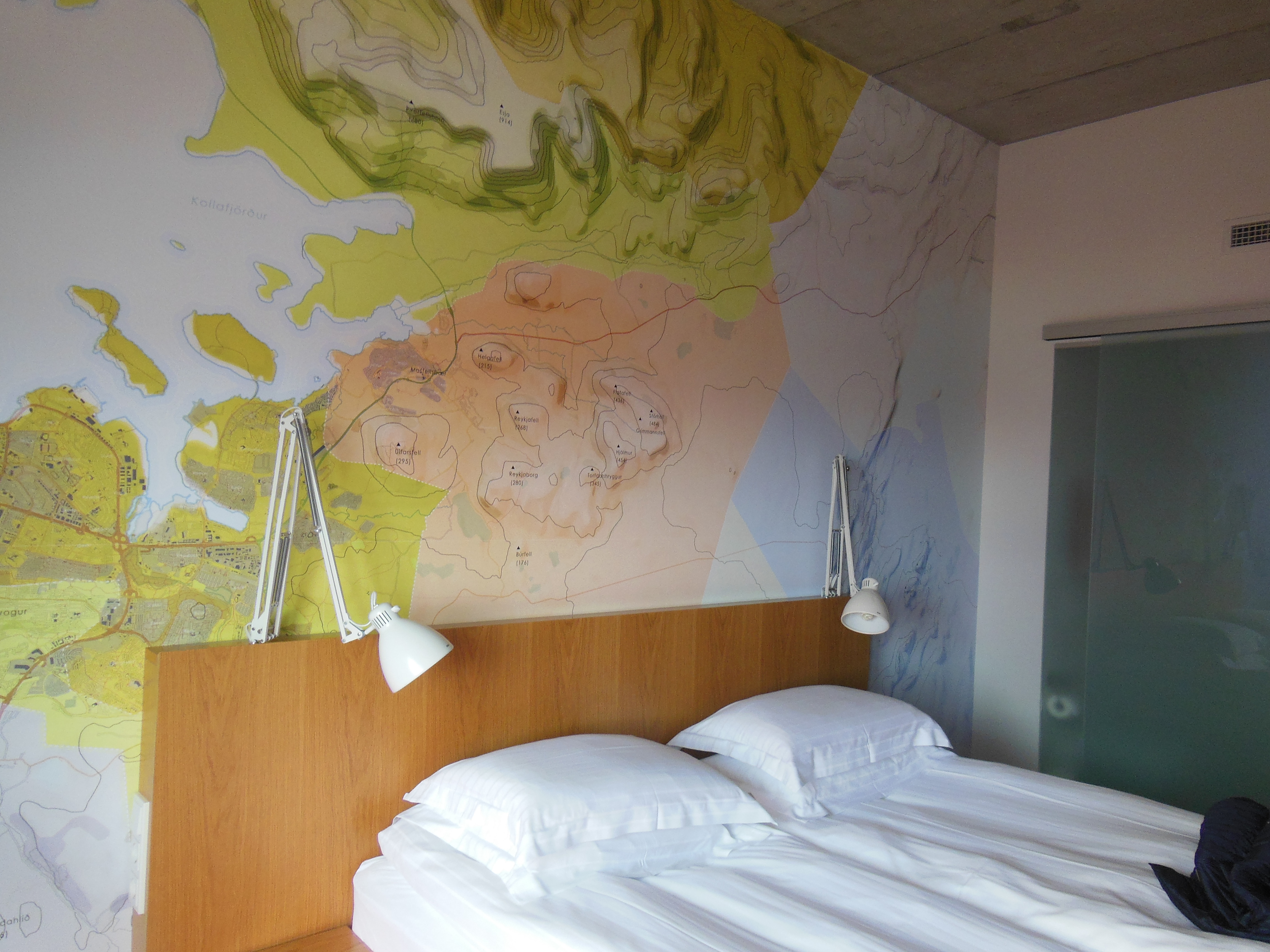 Une fois la voiture déposée aux alentours du port, nous allons déjeuner le midi, au restaurant Laekjarbrekka, qui même s’il aura été très bon, nous aura plus intéressé par l’endroit dans lequel il se situe (une très jolie bâtisse datant du 19ème siècle), que les plats en eux-même. Non pas que cela ne vaille pas la peine d’y faire un détour, mais simplement que nous aurons trouvé mieux ailleurs au niveau du gustatif. Le service est impressionnant, les serveuses semblent courir partout, tellement le restaurant est plein à craquer, à presque 100% par des touristes. A conseiller donc, mais en semaine, et si possible à des horaires un peu décalées! Léon n’ayant pas dormi durant le trajet trop court menant à Reykjavik, nous allons prendre les clés de notre point de chute pour cette dernière nuit, que nous souhaitions placée sous le signe de l’original, et du confort. Nous arrivons à l’hôtel Icelandair Reykjavik Marina sur les coups de 14H, je laisse les femmes aller faire un peu de lèche vitrine, tandis que Léon et moi restons dans la chambre pour une bonne sieste. Les chambres sont vraiment superbes, nous avions demandé une vue sur le port, et nous n’avons pas été déçus. Il faut dire que les fenêtres donnent sur le chantier maritime, et que nous pouvons voir les bateaux en cale sèche. Je commettrais cependant une erreur, en ne prenant pas le chalutier en photo avant de m’endormir pour la sieste, car à notre réveil, ce dernier sera de nouveau sur l’eau, à mon grand désarroi. Spacieuses, lumineuses, très confortables, et agrémentées d’une très belle déco, vraiment, ce sera cet hôtel qui retiendra nos faveurs à Nathalie et moi-même. Léon aussi a eu un coup de coeur pour l’endroit, mais cela n’a rien à voir avec le confort ou un quelconque élément de décor, puisqu’il est resté facilement 45min à jouer sur une table de jeu spécialement concue pour les enfants, et avec des trains en bois. Que ce fût dur de le faire partir!!! Nous allons néanmoins nous promener dans les artères de la ville, une dernière fois, en fin d’après-midi. Je vais à reculon dans la boutique 66th North, pour en ressortir avec un large sourire et une magnifique veste sous le bras, Léon aussi aura droit à sa petite tenue de la marque. La paire féminine ne sera pas en reste concernant le shopping, avec quelques amplettes à leur actif. Oui, nous avons fait des folies, mais relativement douces 🙂 Il faut dire qu’entre temps, nous avons eu la dernière mauvaise nouvelle concernant les excursions, et avons fait un carton plein… enfin, un carton vide je veux dire, puisque la sortie à l’intérieur du volcan a été annulée à cause des conditions climatiques. Vous voyez, tout à été fait pour que l’on se retrouve dans cette boutique, ce n’est pas notre faute! Nous n’avons vraiment pas eu de chance avec les sorties payantes en Islande, 3 étaient au programme et aucune n’aura été réalisable. Cela fait donc 3 nouveaux prétextes pour revenir! Mais pour l’heure, le ciel c’est quelque peu dégagé, nous permettant de faire une dernière fois le tour de cette capitale charmante et à taille humaine.