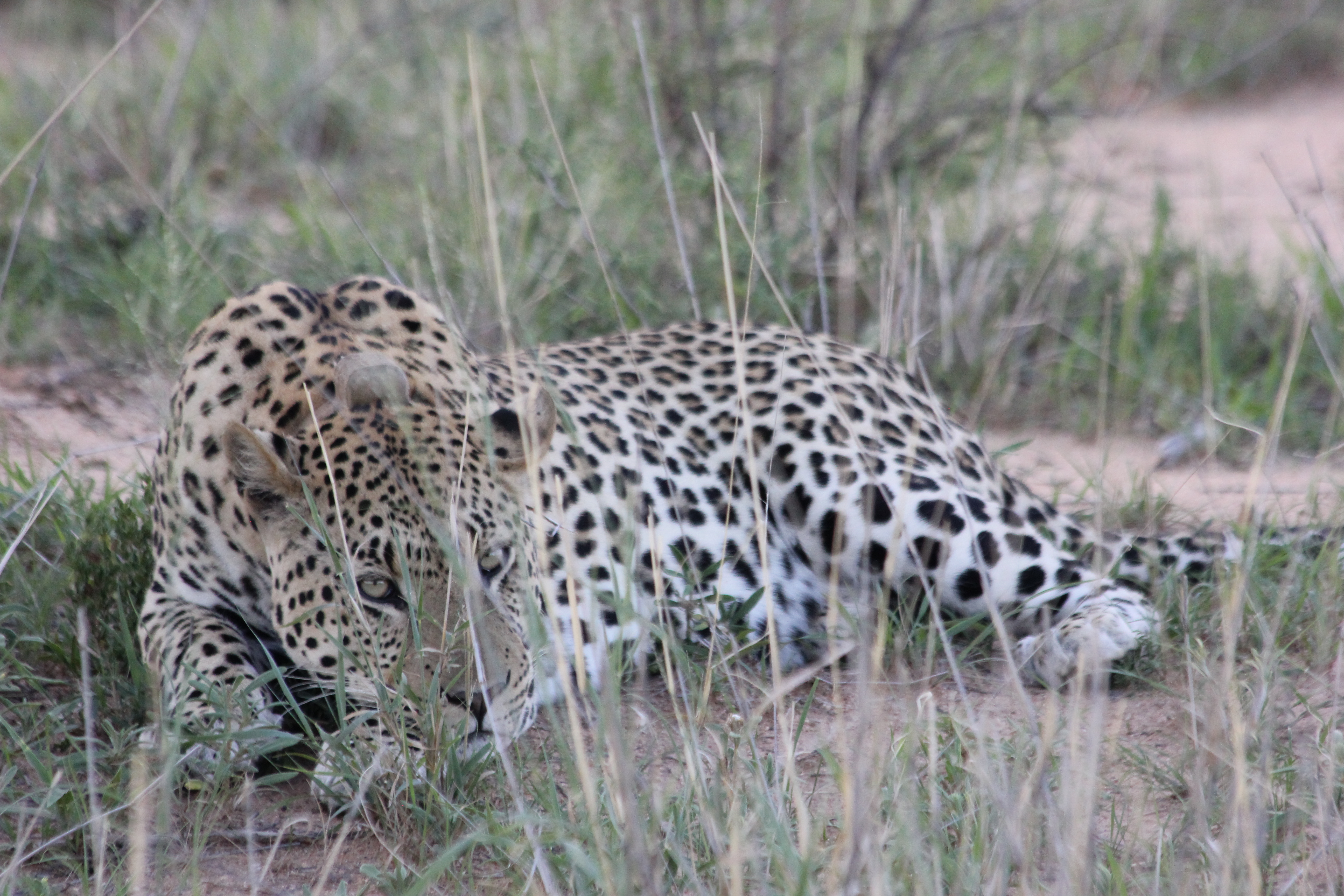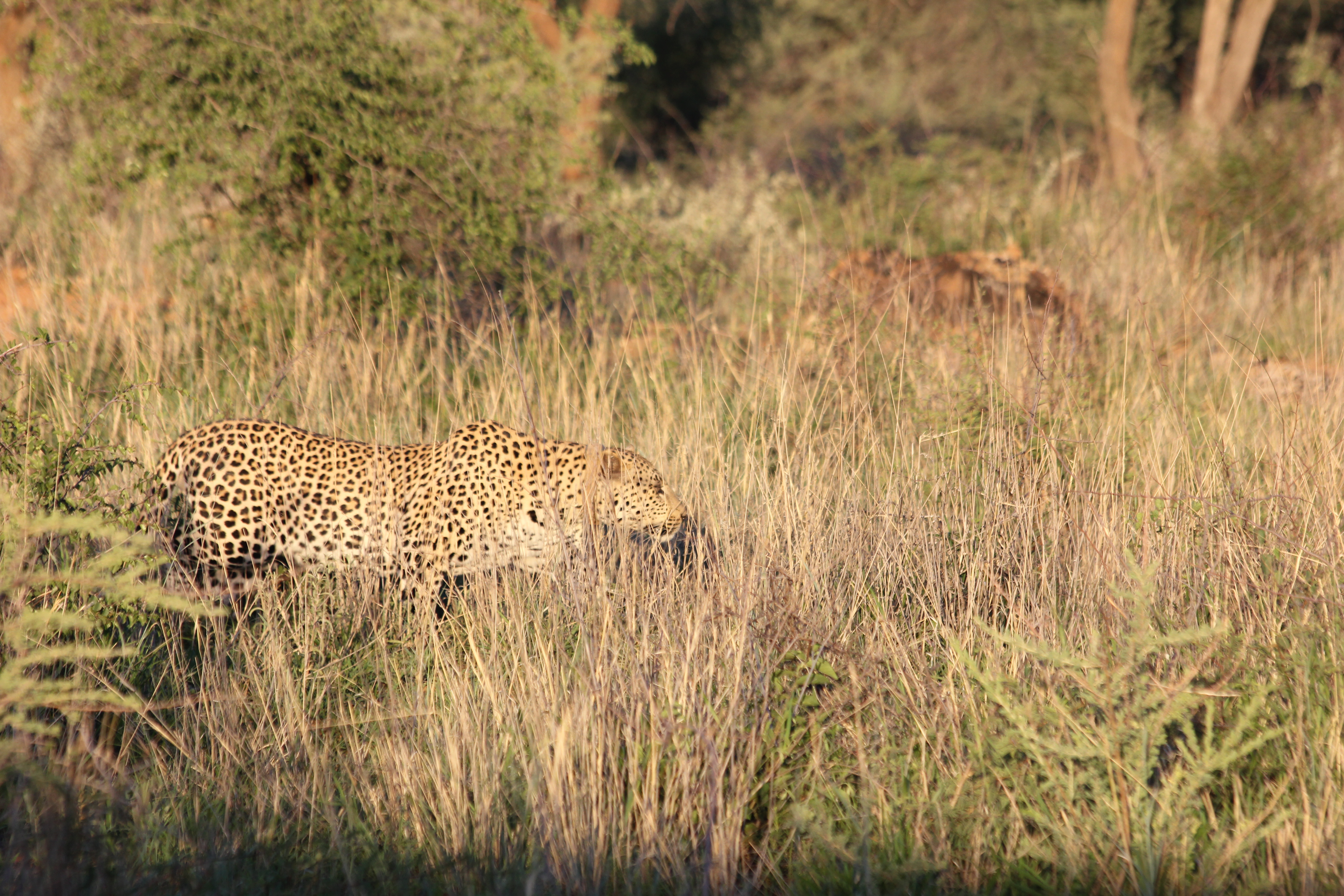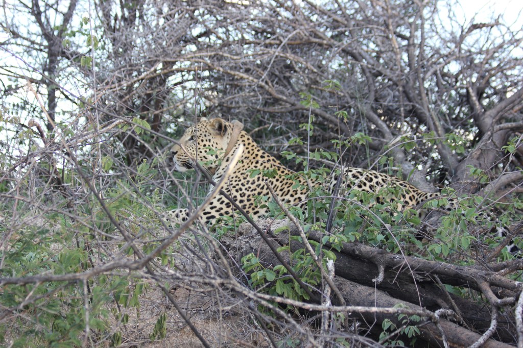 Le signal semble s’intensifier, la tension monte clairement d’un cran pour nous. Le terrain est chaotique, la végétation très dense, et même en tentant de passer par des chemins annexes, même si le signal indique clairement que nous sommes tout proche, rien. Pas de léopard en vue. Je suis sûr que même elle, cette femelle que nous recherchons, elle l’entendait le signal émis par le radar depuis le véhicule. La frustration se mêle à l’espoir, à la confusion aussi, nos yeux scrutent comme ils le peuvent la végétation, le guide lui aussi est persuadé que nous y sommes, elle est à côté de nous, mais toujours rien. Nous allons tourner environ 45min autour de l’endroit ou serait le léopard tant espéré, mais rien. Rien de rien, pas une moustache, même pas une petite tâche noire à se mettre sous la dent. Honnêtement à ce moment-là du tracking, je me dis que ce n’est pas possible, on ne va pas passer si près de l’animal tant convoité, et rentrer sans l’avoir observé, ils ne vont pas nous laisser comme ça!