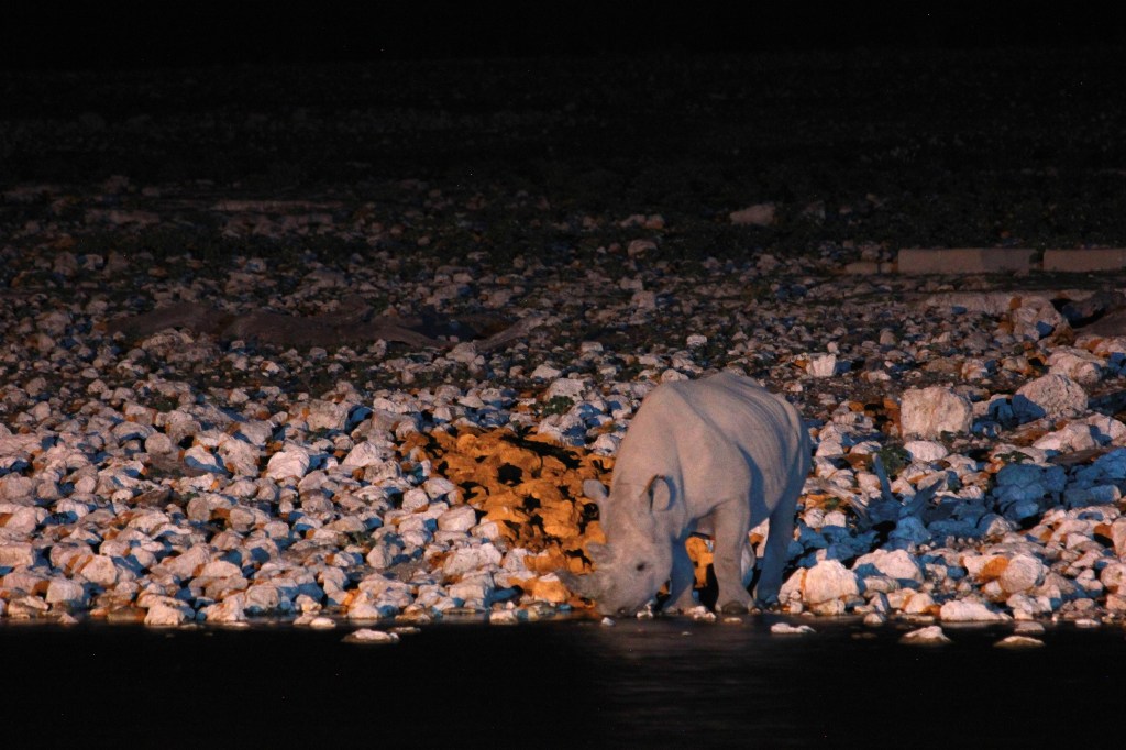 Avec le réveil matinal et la chaleur extérieur, personne ne se fait prier pour s’allonger sur son lit et faire une bonne sieste, nous profitons d’avoir la climatisation pour nous reposer et recharger nos batteries. Nous continuons également sur notre lancée en effectuant encore quelques devoirs, et je m’éclipse de mon côté pour répondre à quelques obligations professionnelles. Et oui, nous sommes le premier du mois, il me faut contacter notre comptable pour les salaires. C’est fou comme ces phrases sont dissonantes dans ce récit, mais c’est aussi un peu comme cela que je l’ai vécu. Installé au bord de la piscine avec la tablette, une bière à la main, envoyant tous les éléments nécessaires pour faire les virements dans les prochains jours. Je dis bien les prochains jours car nous ne savons vraiment pas quand ni dans quelles conditions nous aurons de la connexion, même s’il est vrai que des spots wifi sont souvent disponibles aux réceptions des campings. Parenthèse pro refermée, je retrouve la petite famille en train de se mettre en tenue pour aller jouer dans la piscine, nous ne ressortirons pas Luffy aujourd’hui. Au contraire, on régresse même dans notre dynamique, et on se prépare un bon apéro et un braai pour le soir. On doit aussi commencer à ranger nos affaires, demain matin nous quitterons les lieux pour la suite du périple. La fin de journée sera donc placée sous le signe de la tranquillité, sans avoir d’obligation ni contrainte. Je retourne au point d’eau une dernière fois, quand tout le monde est couché et endormi, et passe un bon moment à observer un rhino, pas le même qu’hier en comparant mes photos. Une fois disparu dans la nature, le point d’eau restera désert, je vais donc me coucher sans regret! Demain nous allons aller encore plus à l’Ouest dans le parc d’Etosha, et découvrir une partie du parc qui n’était tout simplement pas accessible lorsque nous sommes venus il y a 12 années de cela. Je trépigne à l’idée de découvrir Olifantsrus!