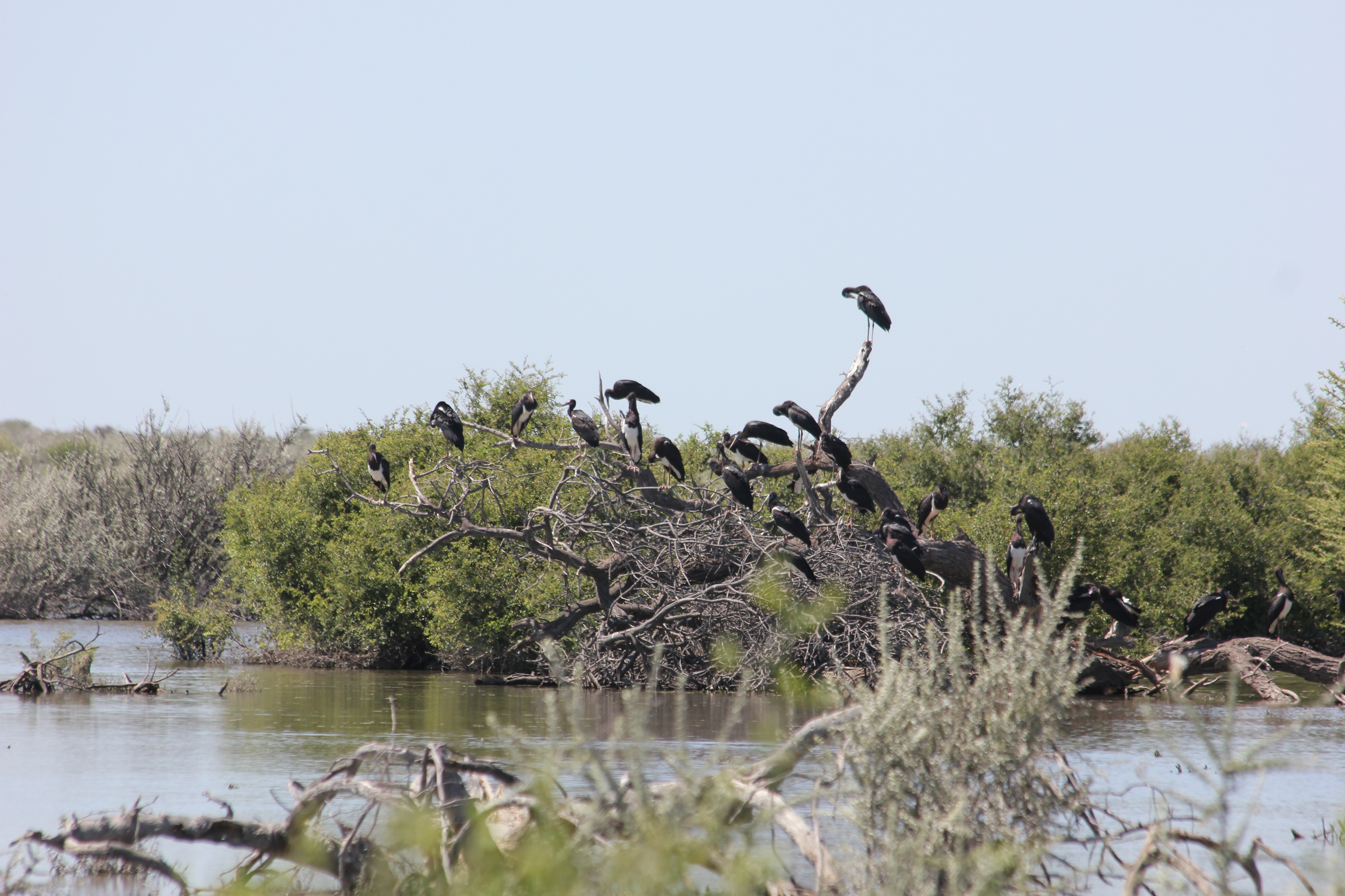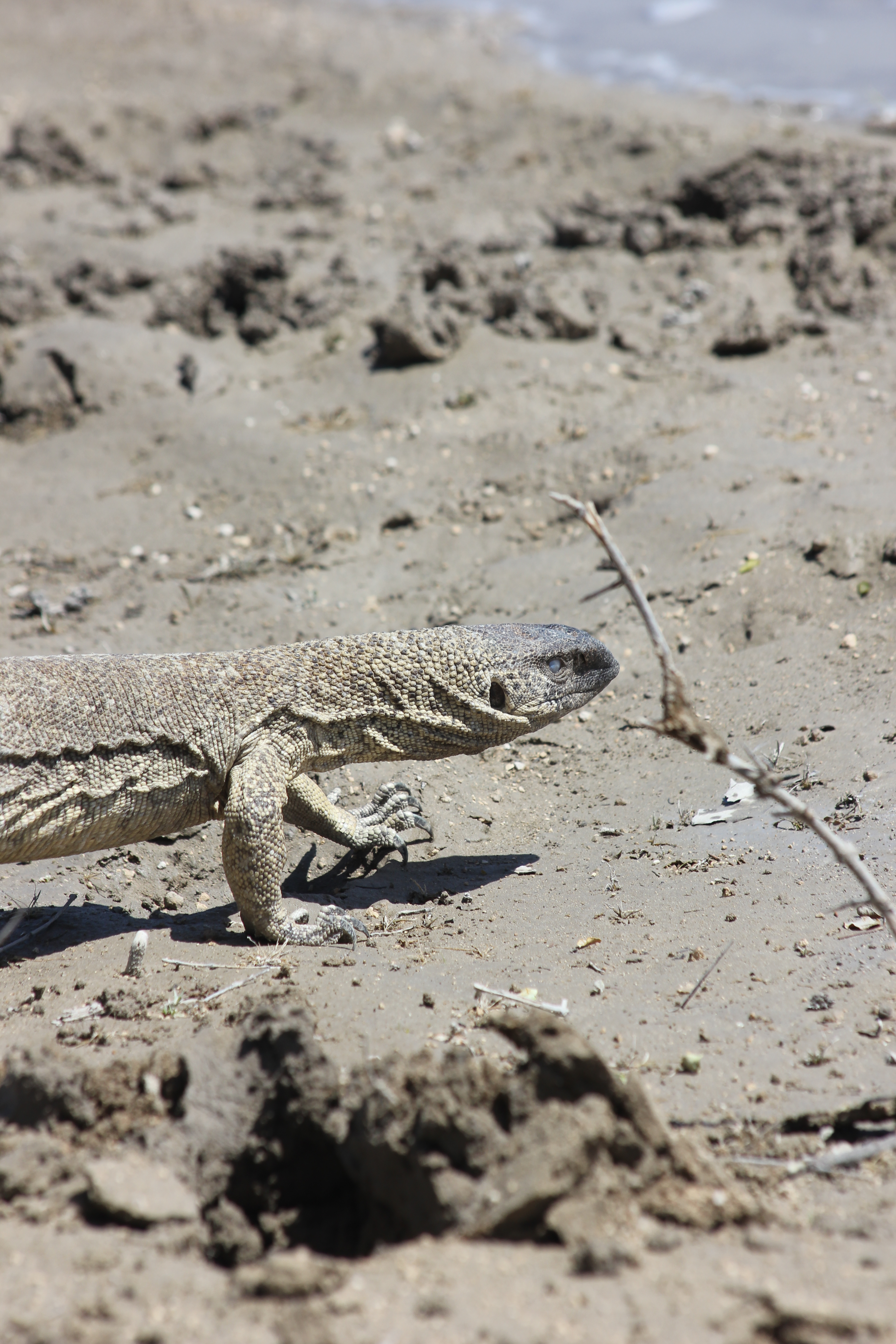 Nous arrivons à Okaukuejo sur les coups de 9H, ravis par cette balade matinale tout à fait passionnante! Mais pas le temps de niaiser, nous fondons sur le buffet du petit-déjeuner, et engloutissons un bon repas pour reprendre des forces. Les garçons sont très rigolos à observer, ils font tout comme les grands et vont se servir eux-même, et même jusqu’à demander ce qu’ils veulent auprès des serveurs. C’est intéressant de les voir grandir, gagner en confiance et en autonomie, la barrière de la langue n’en est vraiment pas une pour eux. Une fois repus, nous allons faire une petite pause brossage de dents et ablutions à notre chambre, et remontons directement en voiture. Nous allons refaire l’itinéraire de ce matin, en faisant moins de pause certes, dans le but d’essayer de retrouver les jolies bestioles aperçues lors du drive. Nous parvenons à retrouver les lieux où les lions étaient il y a encore 1H de cela, mais il n’y a plus personne malheureusement. Tout comme le rhino et la hyène d’ailleurs… Arrivés au niveau d’un point d’eau causé par la pluie Léon parvient tout de même à observer un nouvel animal, pour le plus grand plaisir de Nathalie! Un magnifique lézard, ressemblant à un varan, mais en plus petit. Il a quand même une drôle de tête, pas très attrayant, et à surtout une particularité plutôt cocasse, puisqu’il n’a plus sa queue. Les enfants se marrent bien en le regardant, d’autant que sa démarche n’est pas la plus élégante. En plus de quelques oiseaux que nous parviendrons à observer, ce seront les moments les plus notables de notre boucle, nous finissons par rentrer au camp pour le repas du midi. Pas de gastronomie de fou pour ce midi, ce sera petit-pois carottes, et riz blanc.