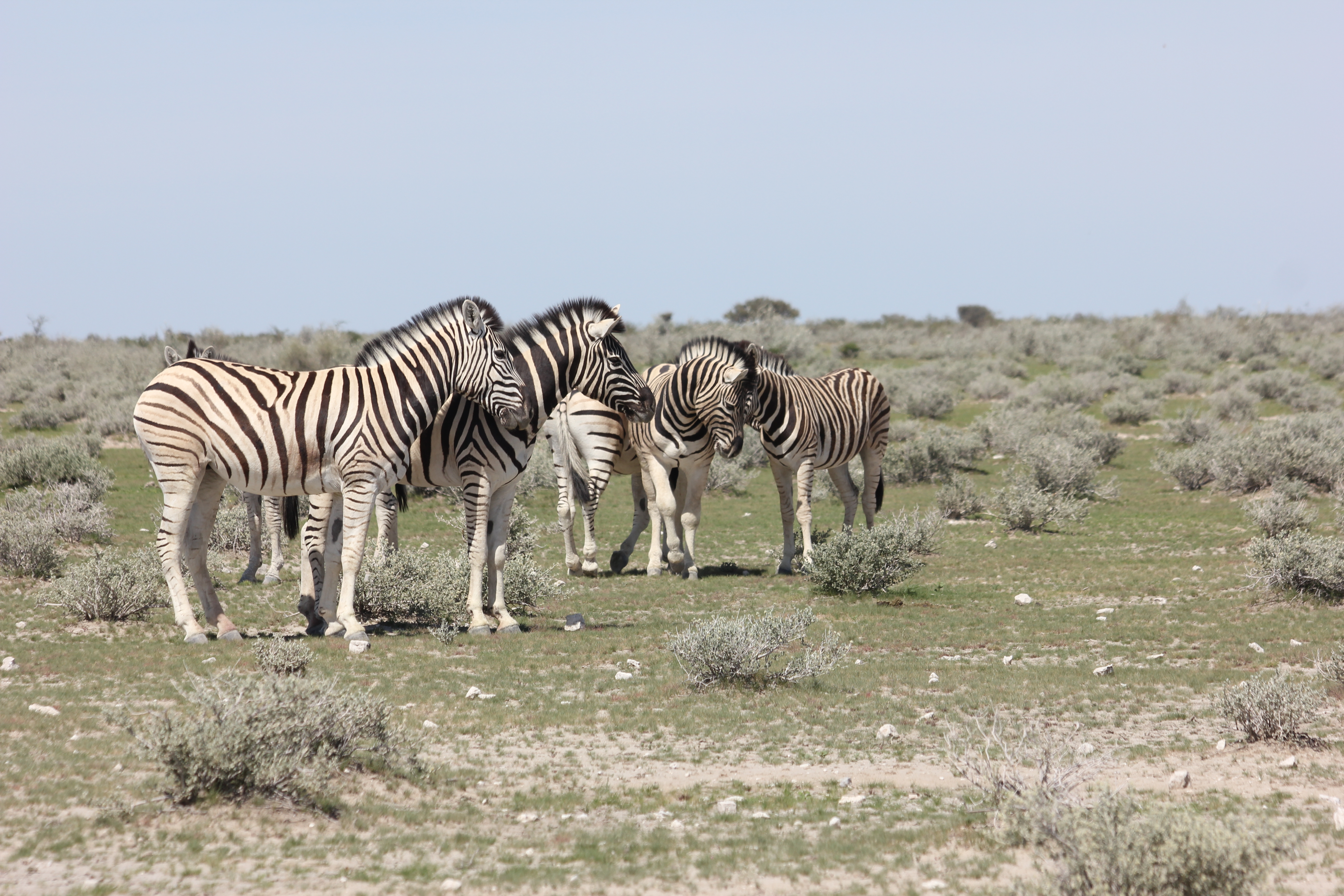 Petit déjeuner pris avec le soleil qui se lève dans le ciel et vient réchauffer nos visages, le café a définitivement une meilleure saveur lorsqu’il est pris dans de telles conditions. Notre petite organisation se met en place tout naturellement, je désinstalle les 2 tentes pendant que Nathalie et les garçons rangent le petit déjeuner et s’habillent. Une fois que notre Luffy est chargé, tout le monde se met en voiture, nous expliquons un peu aux garçons le parcours que nous allons réaliser aujourd’hui dans Etosha, avant de rejoindre Okaukuejo, situé rappelez-vous à 150km de là. Nous décidons de faire la boucle du « Rhino Drive », qui démarre au sud du campement, pour une boucle de quelques dizaines de kilomètres. Son nom est très prometteur, on se dit que les rhinos aperçus hier ne sont peut-être pas très loin, et que ce serait bête de ne pas tenter notre chance. Si la piste est assez sympa, avec d’énormes flaques d’eau à traverser (il y a 4 enfants dans ces cas-là dans la voiture, Nathalie est la seule personne responsable dans le lot), il faut avouer que nous ne verrons pas un chat durant cette boucle. Un peu déçus forcément, nous nous trainons encore un peu sur la piste longeant le Pan asséché en espérant croiser des animaux, mais sans succès. Le décor change au fil des kilomètres que nous parcourons, et mis à part quelques zèbres et springbocks aperçus le long de la piste, cela reste assez monotone, surtout pour les garçons. Je ne vais pas faire comme ci de rien était et jouer au parent « modèle », parmi l’équipement que nous avons pris pour occuper nos longs trajets, nous avons pris en plus des jeux de cartes 3 petites consoles portables, que nous décidons de dévoiler. Inutile de dire que dès lors l’attention des enfants n’est plus, mais nous essayons au possible de retarder le moment ou ils peuvent jouer, et d’en limiter l’accès.