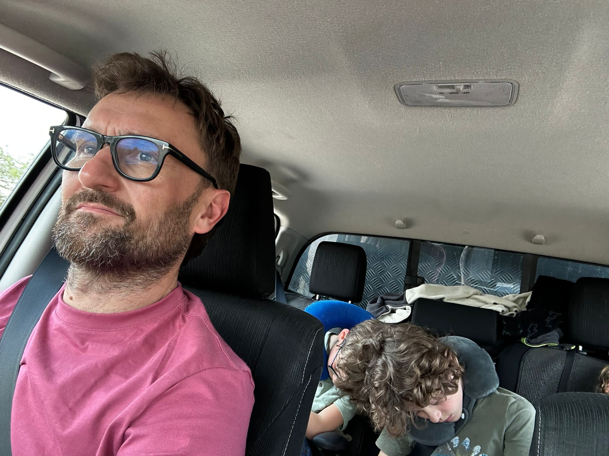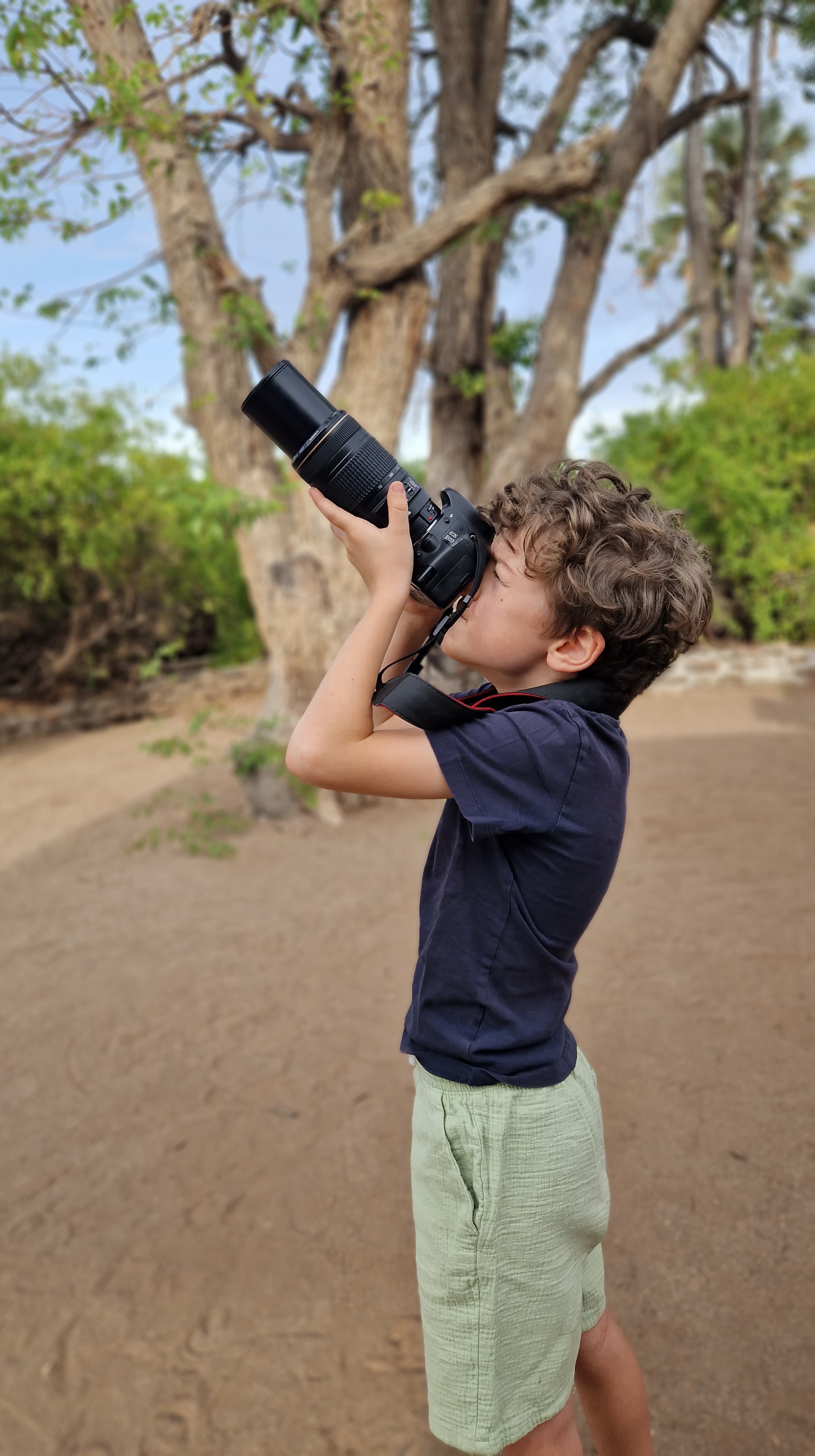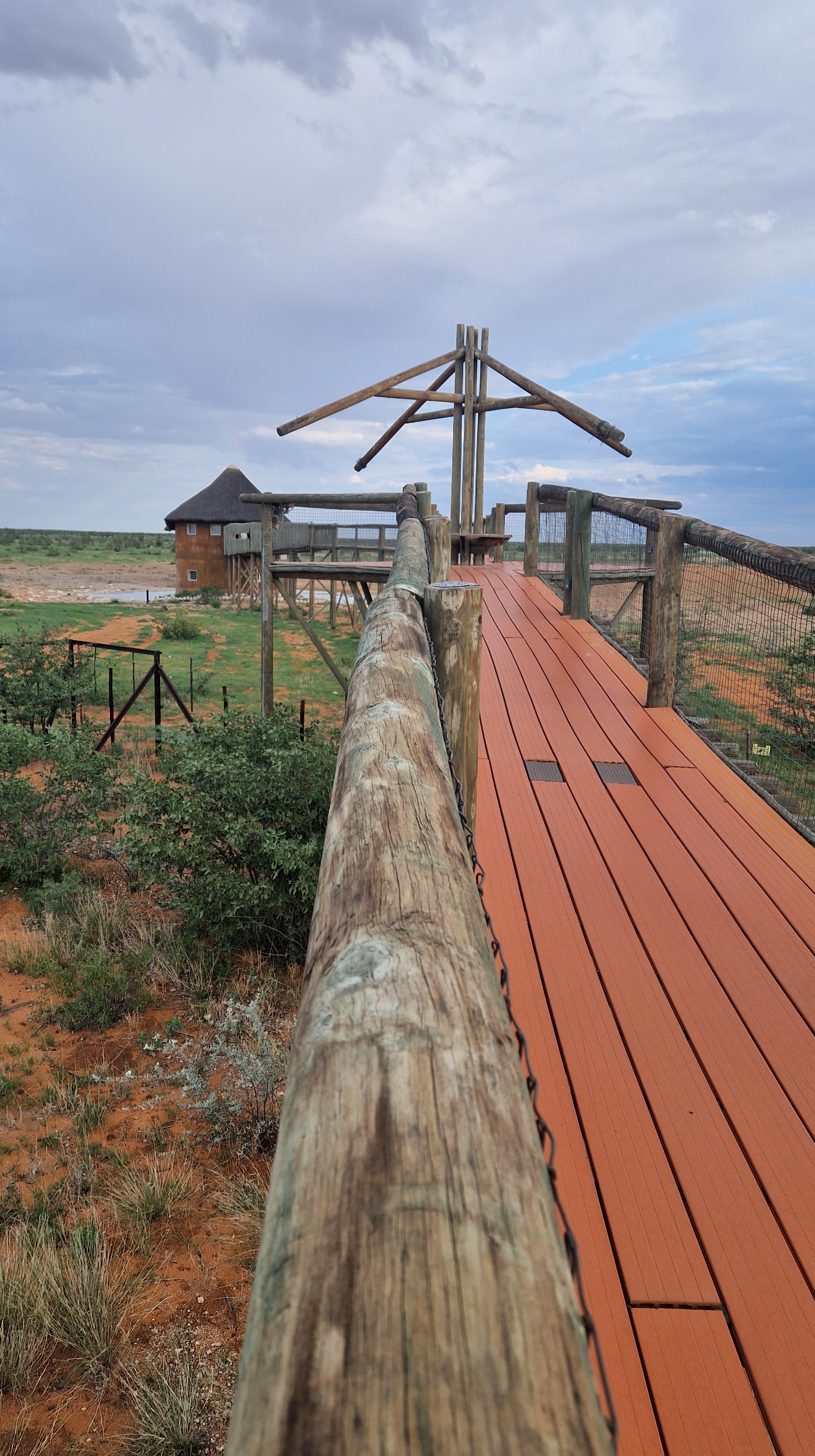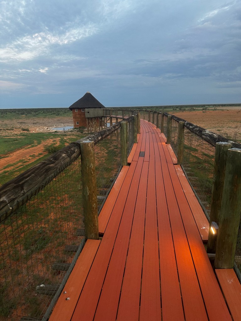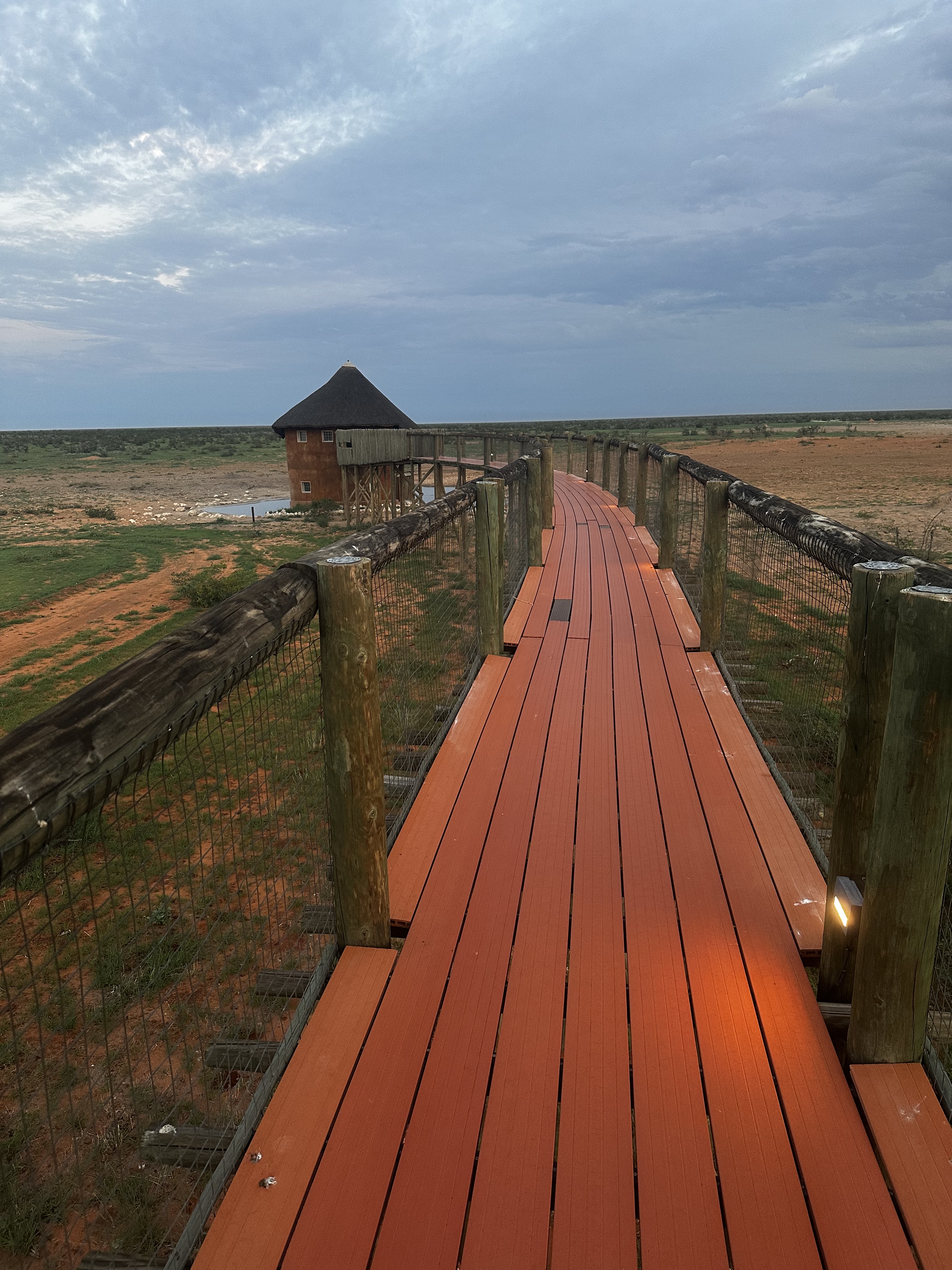 C’est la tête un peu embuée que nous ouvrons les yeux dans les tentes. Tout comme c’était le cas il y a quelques jours je me lève un peu avant tout le monde, vers 5H15 du matin, ne parvenant pas du tout à me rendormir. Je patiente un peu en essayant de ne pas trop faire du bruit, je suis de toute façon un peu coincé, j’ai la jambe de Léon sur les miennes, et Matisse dort en L je ne sais pas trop comment il a réussi à se mettre dans une telle position. Sommeil agité pour les garçons du fait des intempéries, difficultés à trouver une bonne position pour dormir, je suis dans le gaz. Je finis par enfiler mon short et mes sandales, les premières lueurs du soleil commencent à apparaître dans le ciel, je vais faire un petit tour rapide sur le point d’eau. Je ne m’attends en rien à voir un éléphant, ils n’auront pas fait plusieurs centaines de kilomètres dans la nuit, je profite simplement de la vue magnifique que le point d’observation offre.