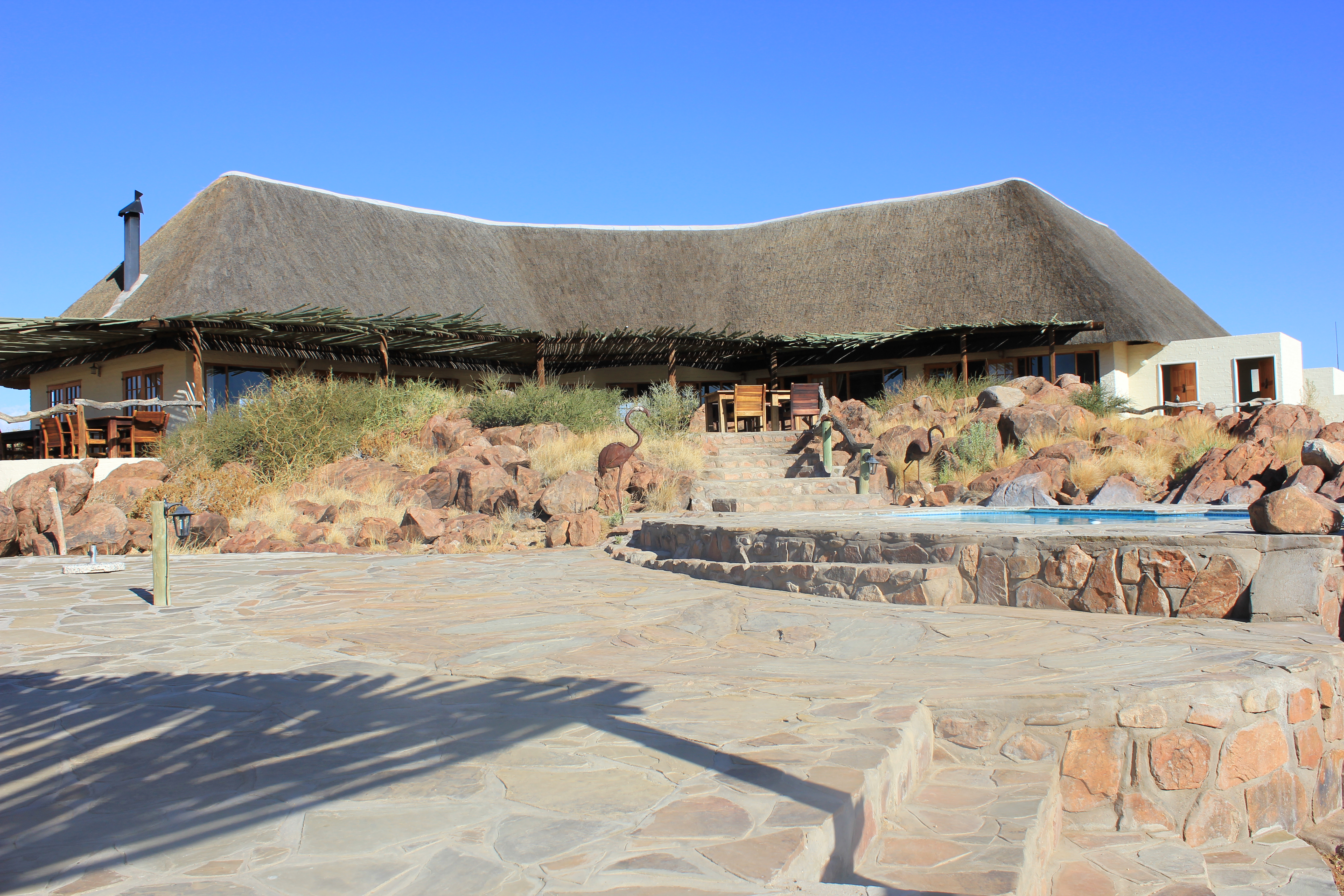 Bâtiment principal du Desert Homestead, avec la piscine